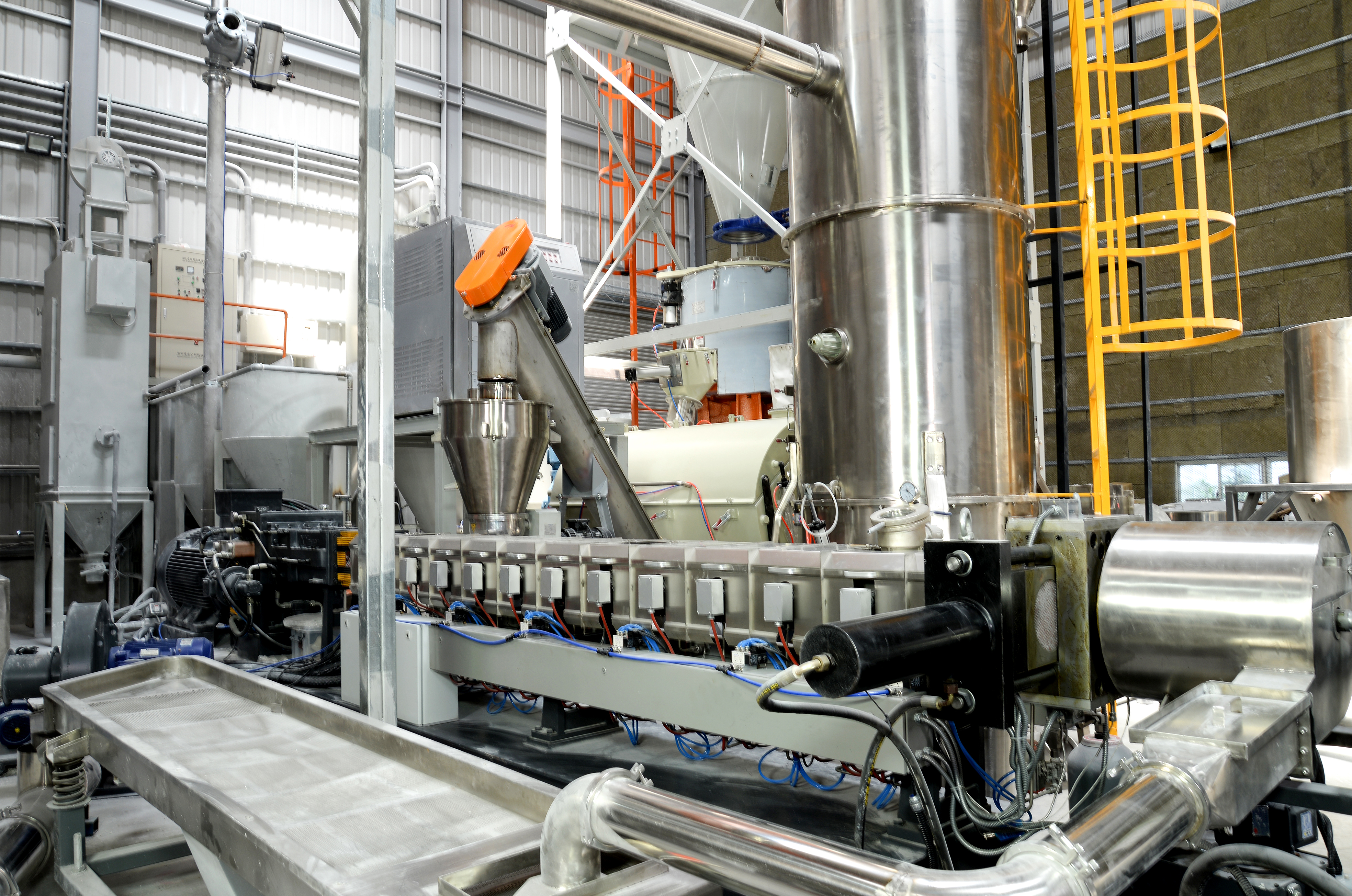 完成建置第一條產線,為利用自動計量系統配料之雙螺桿系統。